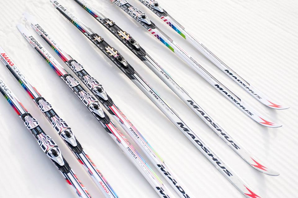 Екипировката за ски бягане се състои от следните елементи: ски, автомати, ски обувки, щеки, удобен и топъл ски екип. Ските, известни с наименованието „писалки“, трябва да са съобразени с височината и килограмите на човека, който ще ги ползва. Различават се от другите видове ски по това, че са по-леки, гъвкави и тесни, и завършват с дълги извити върхове. Дължината на ските за свободен стил е около 15-20см. над собствения ръст, а за класически стил е между 30-35см отново над височината на практикуващия. Има, разбира се и изключения в зависимост от състоянието на пистата и снега, и дистанцията на която ще се използват. Автоматите за прикрепяне на обувките към ските са два вида. Със захващане на едно и на две места, като и в двата случая петата е свободна. Обувките се различават по това, че тези за свободен стил обхващат глезена с шина, която не позволява движение на глезена встрани, а при тези за класически стил глезена е напълно свободен, обувката е ниска. Щеките също са различни за двата стила. Около 30см. под ръста на практикуващия, когато са за класически стил и около 20см. под ръста на практикуващия за свободен стил. Когато се използват за тренировки на асфалт, накрайникът на щеката се сменя със специален по-устойчив, без перо. За по-дълбок сняг с цел да се предотврати пропадане на щеката, се използват пера с по-голяма ширина, а за по-твърди писти, когато няма пропадане на щеката, се използват по-малки пера с цел олекотяване на щеката. Вариантите за дрехи за ски бягане са доста, но основното изискване към тях е те да са със защитна мембрана, леки и достатъчно еластични, за да има свобода на движението. Шапка, очила и ръкавици също са доста важни за комфорта на практикуващите.
