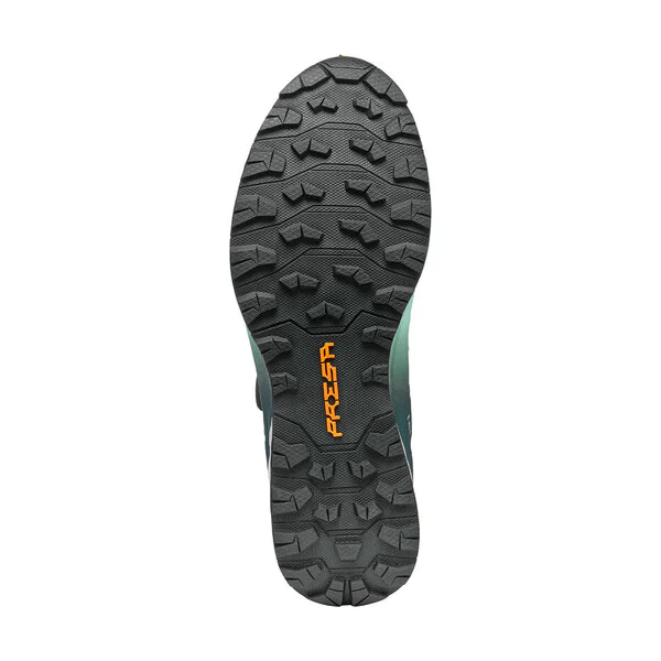 Горната част е от мрежест и микрофибърен плат обгръщащ крака ви като чорап благодарение на системата Sock-Fit LW, която избягва точките на натиск и осигурява максимален комфорт и прецизно прилягане. Защитната система EXO SCARPA предпазва глезена, предоставяйки стабилност и упора.